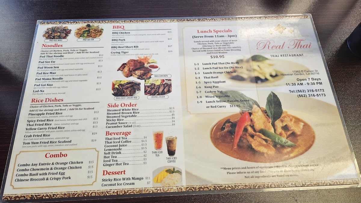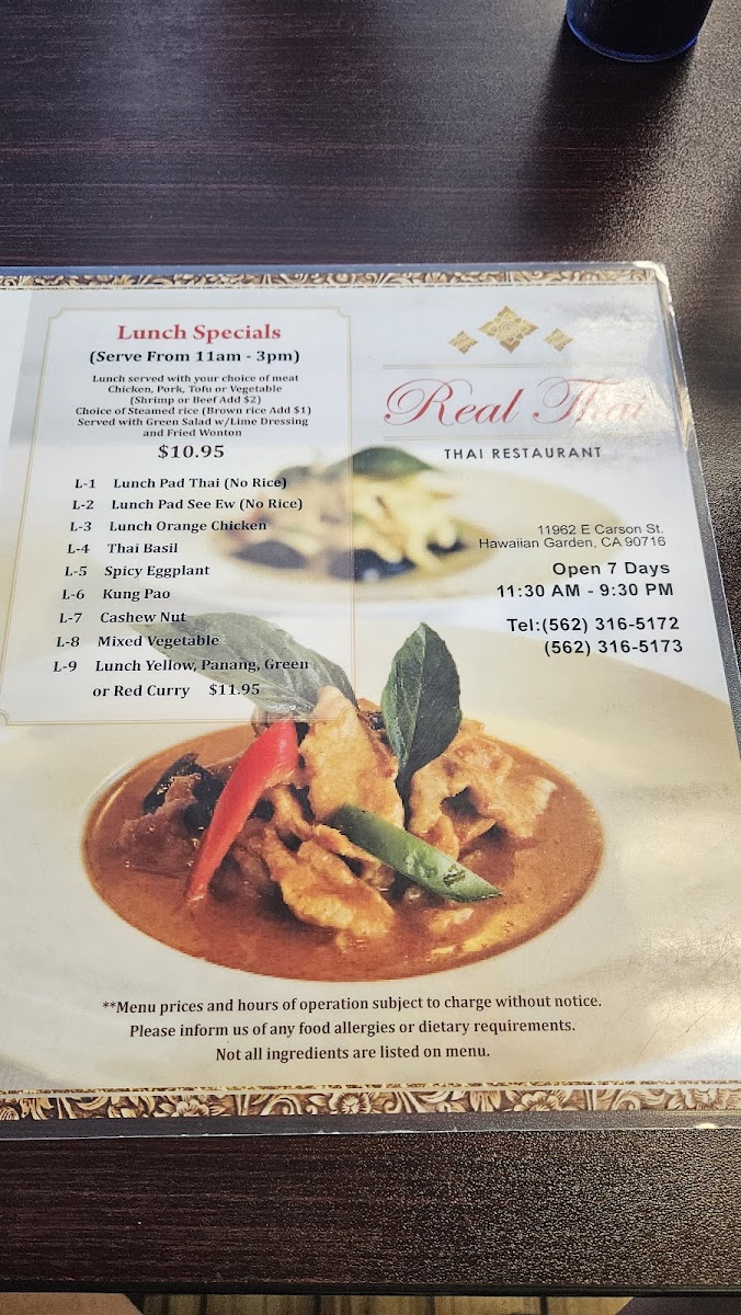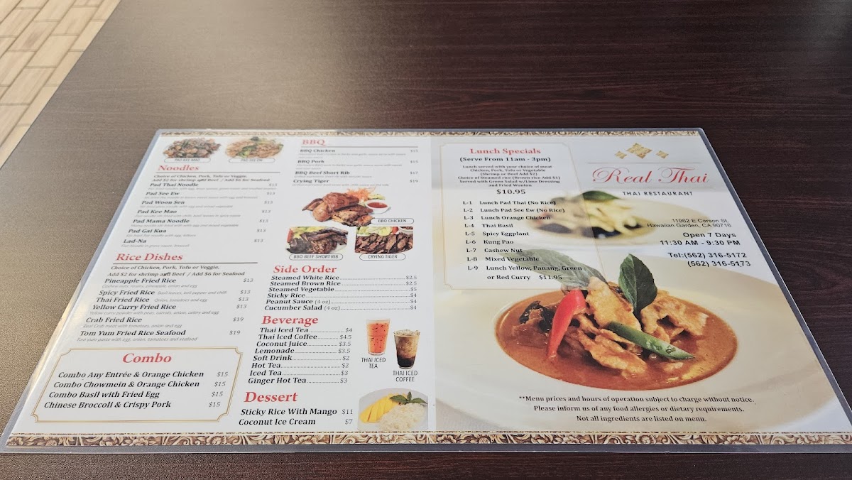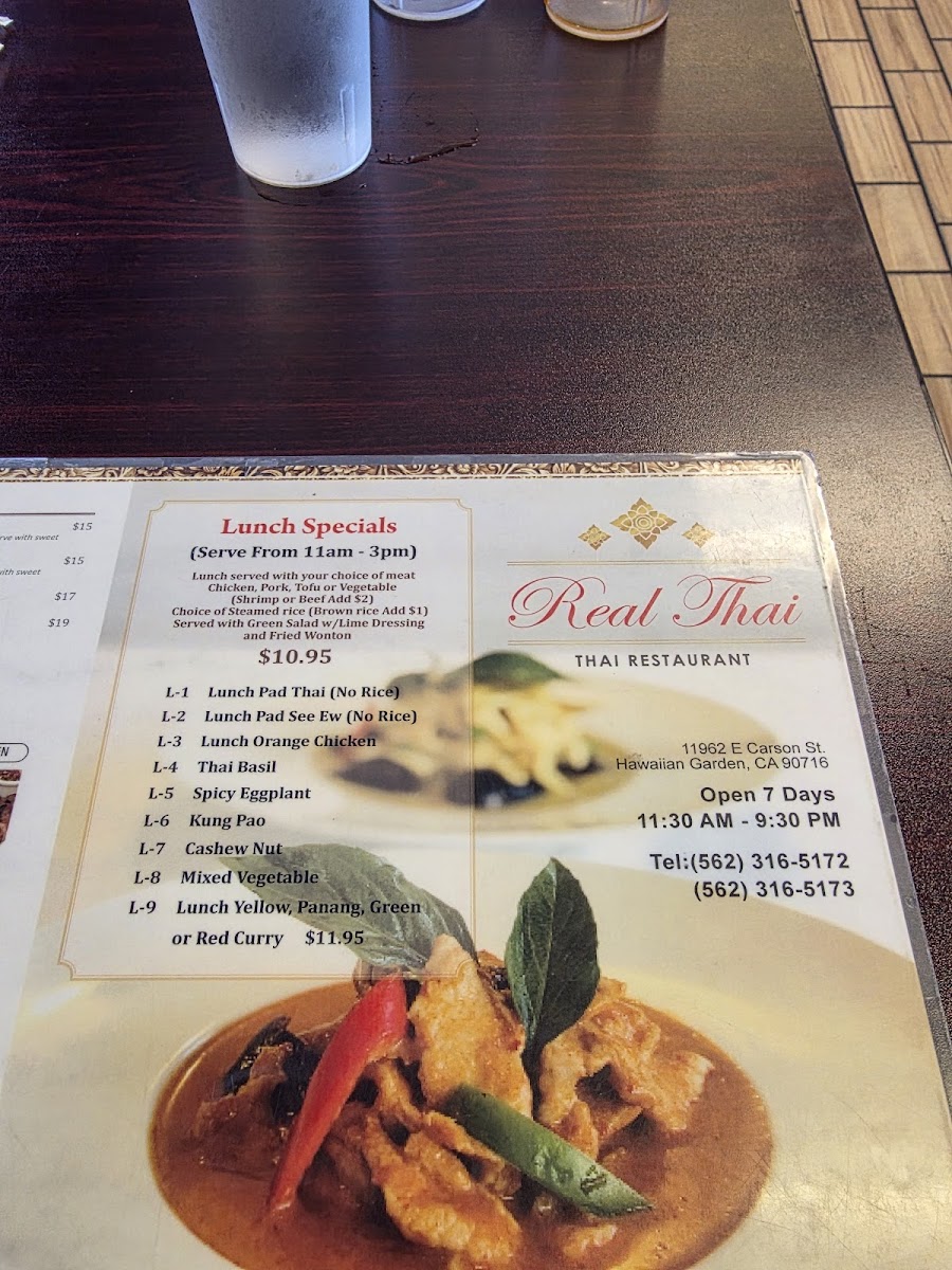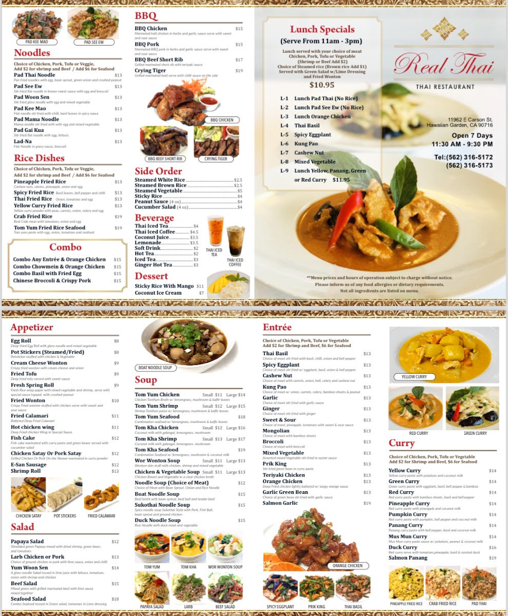 Real Thai Food Menu