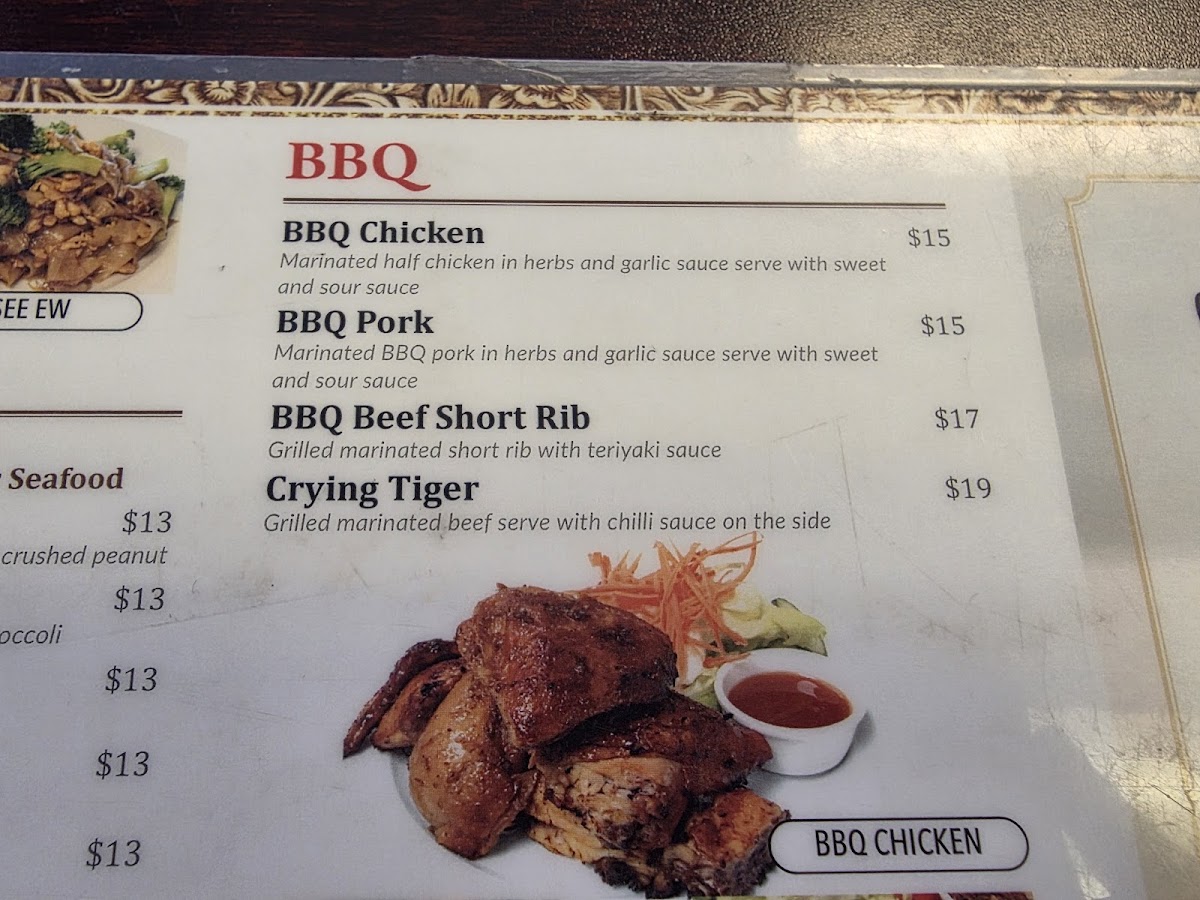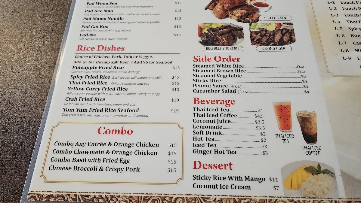 For those finishing on a sweet note, desserts like Sticky Rice with Mango and coconut ice cream provide a gentle, sweet contrast that rounds out the meal naturally. Overall, the menu supports a steady stream of reliable, flavorful dishes that invite you to enjoy a comfortable and unhurried meal any day of the week.